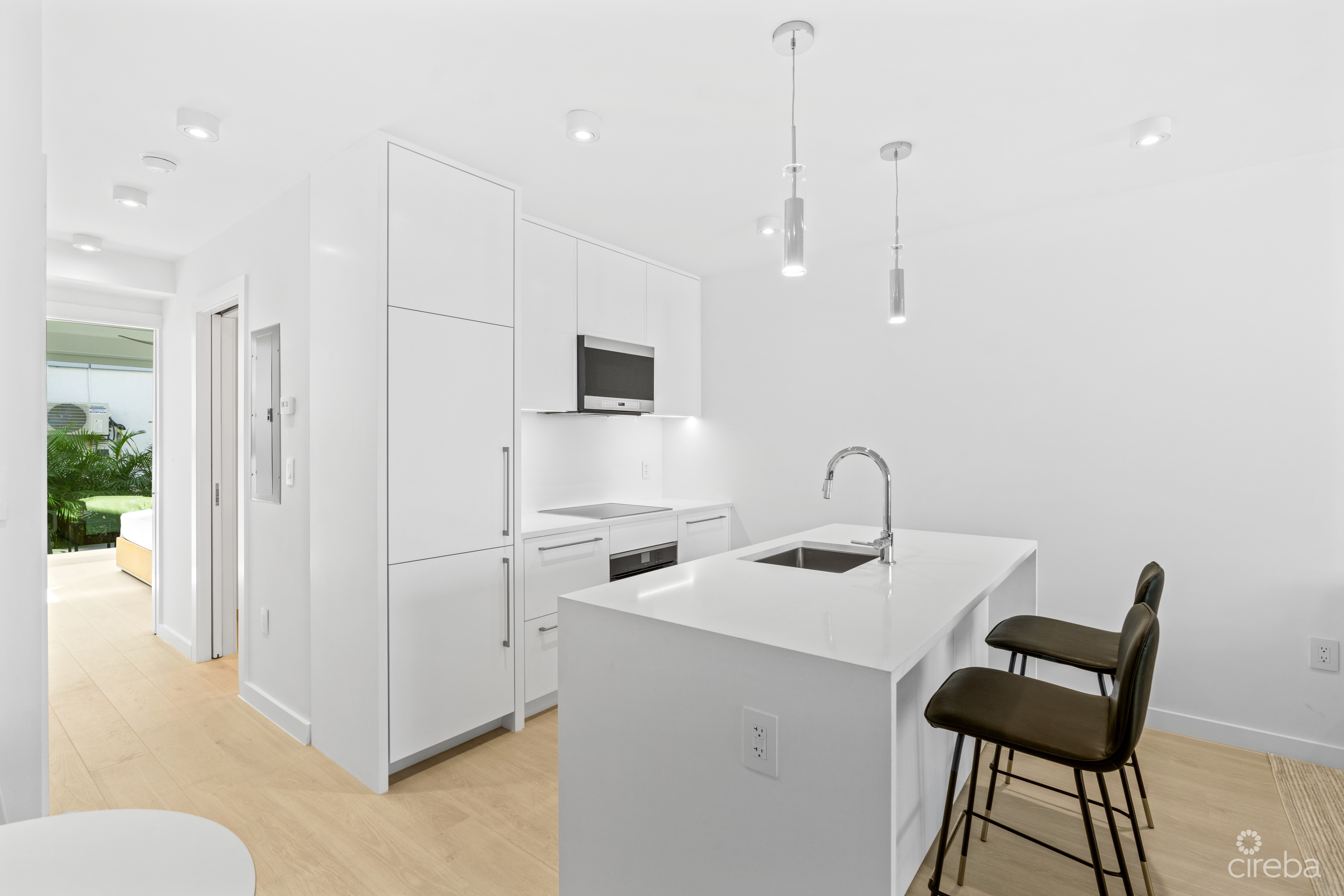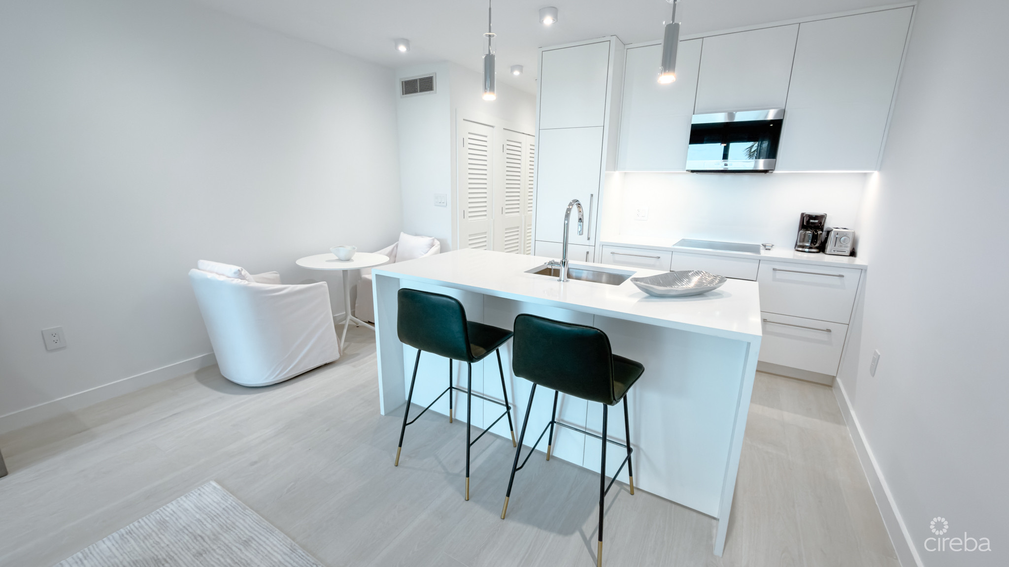 Completely and tastefully renovated in 2025, this condo boasts a sleek, modern white kitchen outfitted with top-of-the-line Miele and Fisher & Paykel appliances, and full-sized washer and dryer for added convenience. The living and dining areas are bright, airy, and refined, evoking a clean, coastal luxury feel that seamlessly blends comfort with style.