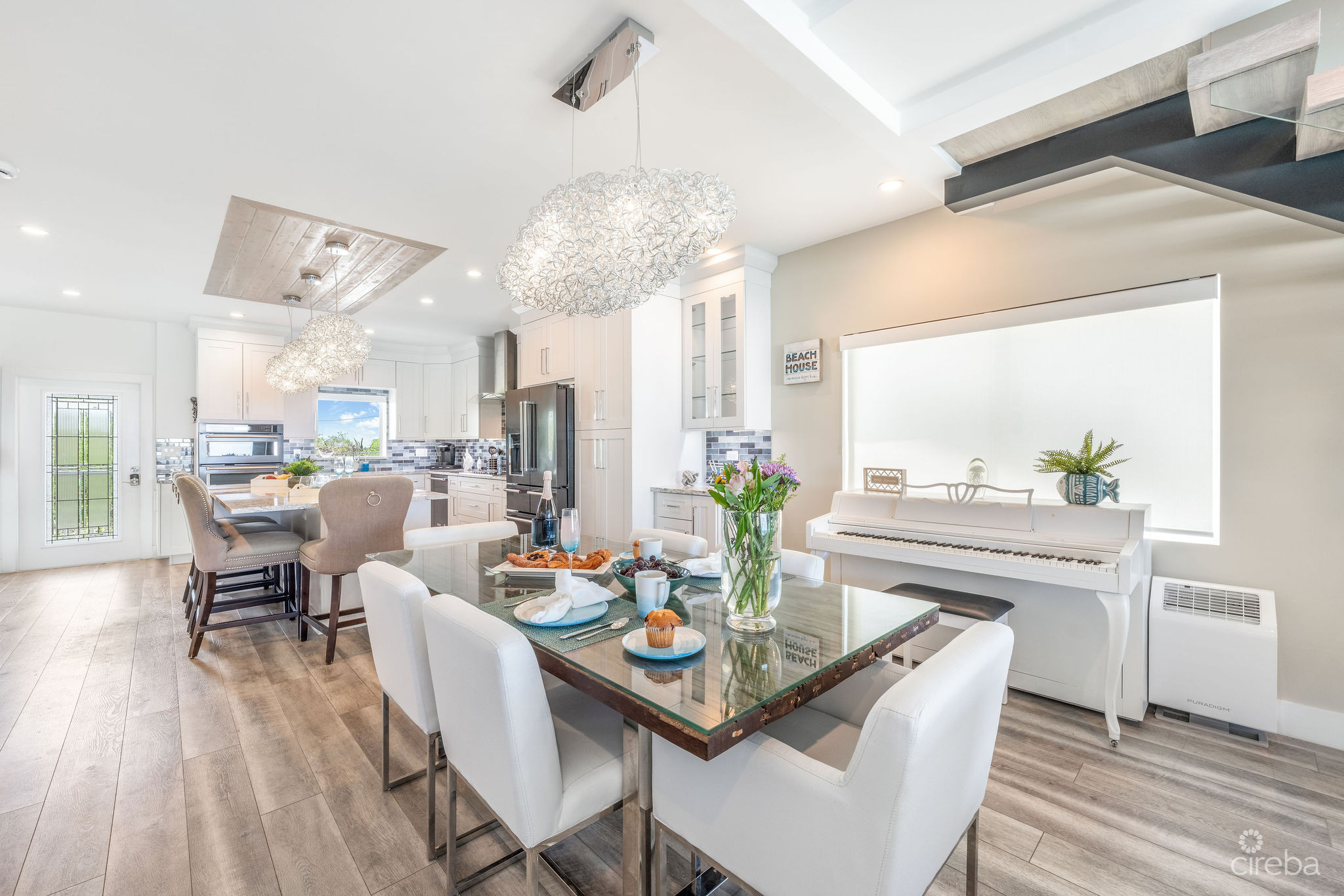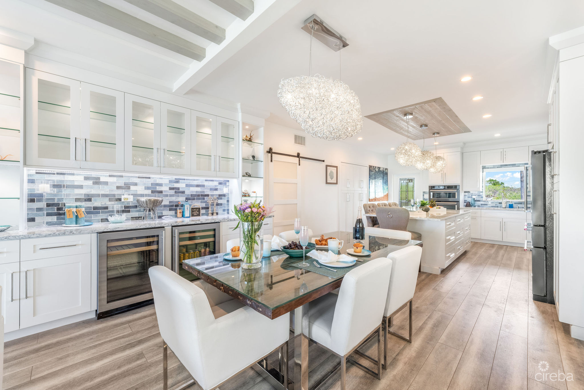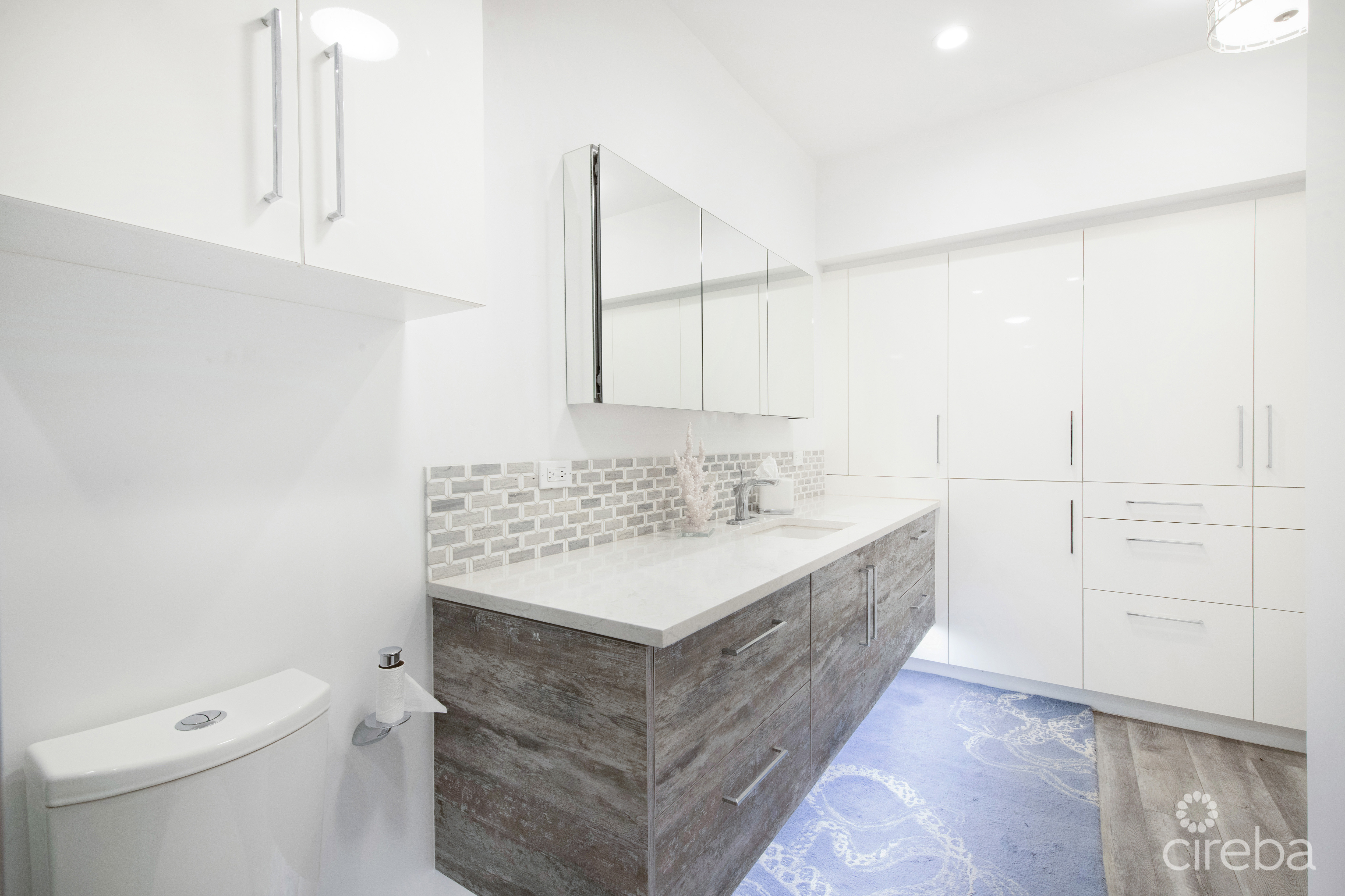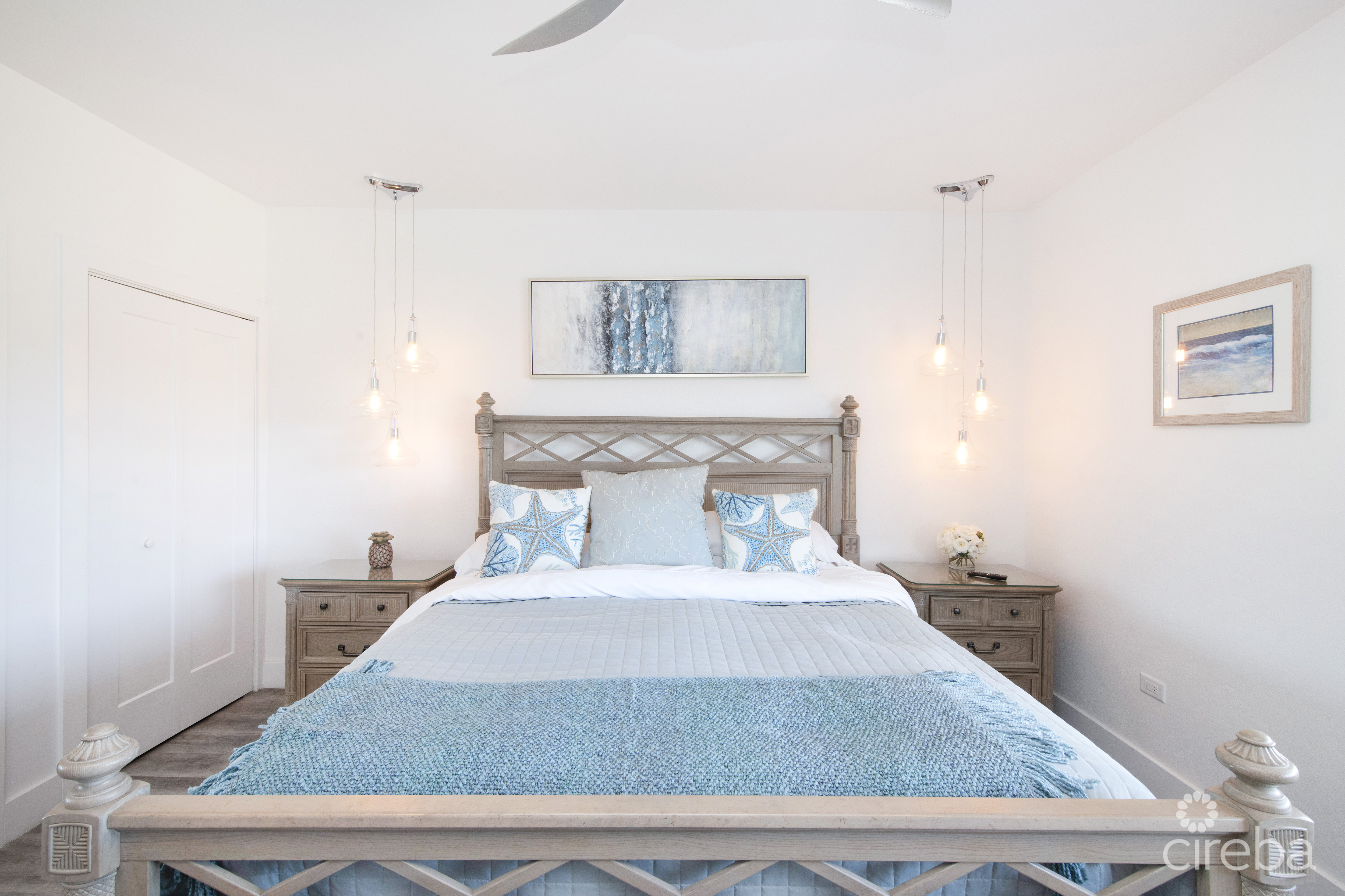 Introducing this meticulously renovated, one-of-a-kind 4 bedroom, 3 bathroom condominium, built as the builder’s personal residence. Located on the shores of Cayman’s iconic Spotts Beach – a sanctuary for resident sea turtles, shady palms, and powdery white sand – this property offers a luxurious coastal living experience like no other. This Penthouse level home boasts sweeping ocean vistas in a captivating palette of blues, greens and aquas, ensuring breathtaking views from virtually every room. From the moment you enter, the panoramic ocean views and expansive white modern cabinetry immediately capture your gaze. Designed with both comfort and functionality in mind, this home features an abundance of smart built-in storage solutions. Custom Murphy Door closet systems maximize space, incorporating built-in shoe storage, laundry hampers, and well organized shelves hidden behind mirrored panels. A true showstopper, the full glass display and LED-lit entertainment bar, paired with two under cabinet beverage centers, elevates the space – perfect for hosting guests or unwinding in style. The spacious kitchen is a chef’s dream, centered around a massive full-slab island that serves both as a stunning focal point and a functional workspace. With a premium appliance package that includes a built-in microwave and wall oven, this kitchen is designed to inspire culinary creativity. Each of the three beautifully appointed bathrooms showcases exceptional craftsmanship, featuring decorator-tiled walk-in showers with barn door glass enclosures, creating a serene spa-like ambiance. The primary bath includes a spacious vanity for everyday essentials, complemented by diffused under cabinet lighting, six foot long mirrored medicine cabinet storage, and an entire wall of custom white-gloss built-in storage cabinets, offering ample, thoughtfully designed space. The generously sized bedrooms are serene retreats, with custom built-ins and a primary suite that captures ocean views, allowing the beauty of the sea to be enjoyed from the comfort of your bed. Another highlight of the condo is the charming ocean-view games room, which doubles as a cozy retreat with a queen-size sleeper sofa to comfortably accommodate additional guests. Step outside onto the large elevated 294 square foot rear open lanai, where you can dine al fresco with a six-seat table, enjoy the tranquil ocean breeze, or unwind in the ample seating areas. Perfect for entertaining, lounging, or relaxing with loved ones, the lanai offers a true extension of your living space. This exceptional condominium perfectly blends modern luxury, functionality, and unparalleled views – all wrapped in a sleek contemporary design. Ideally suited as both a sought-after luxury vacation rental or as a spectacular resident family beach home. Schedule your private showing today! *Strata fees include water and Logic package