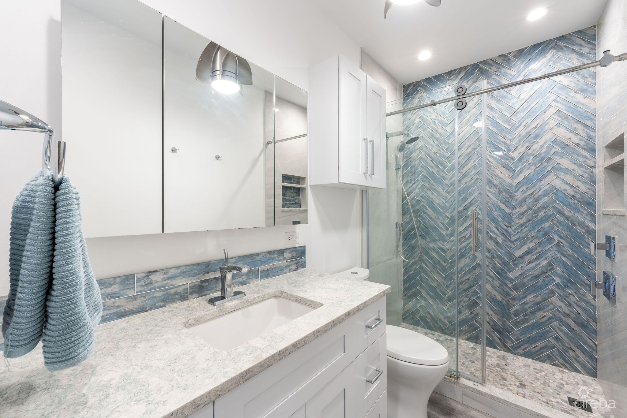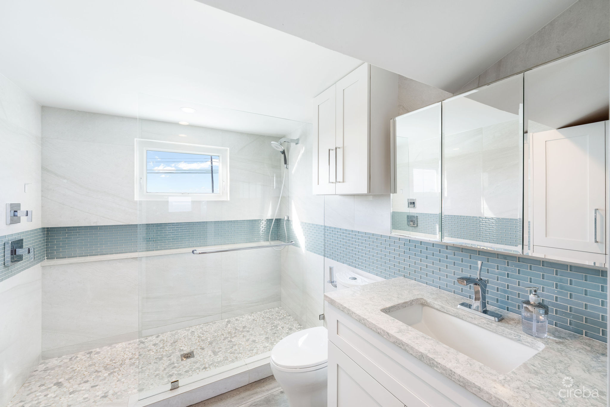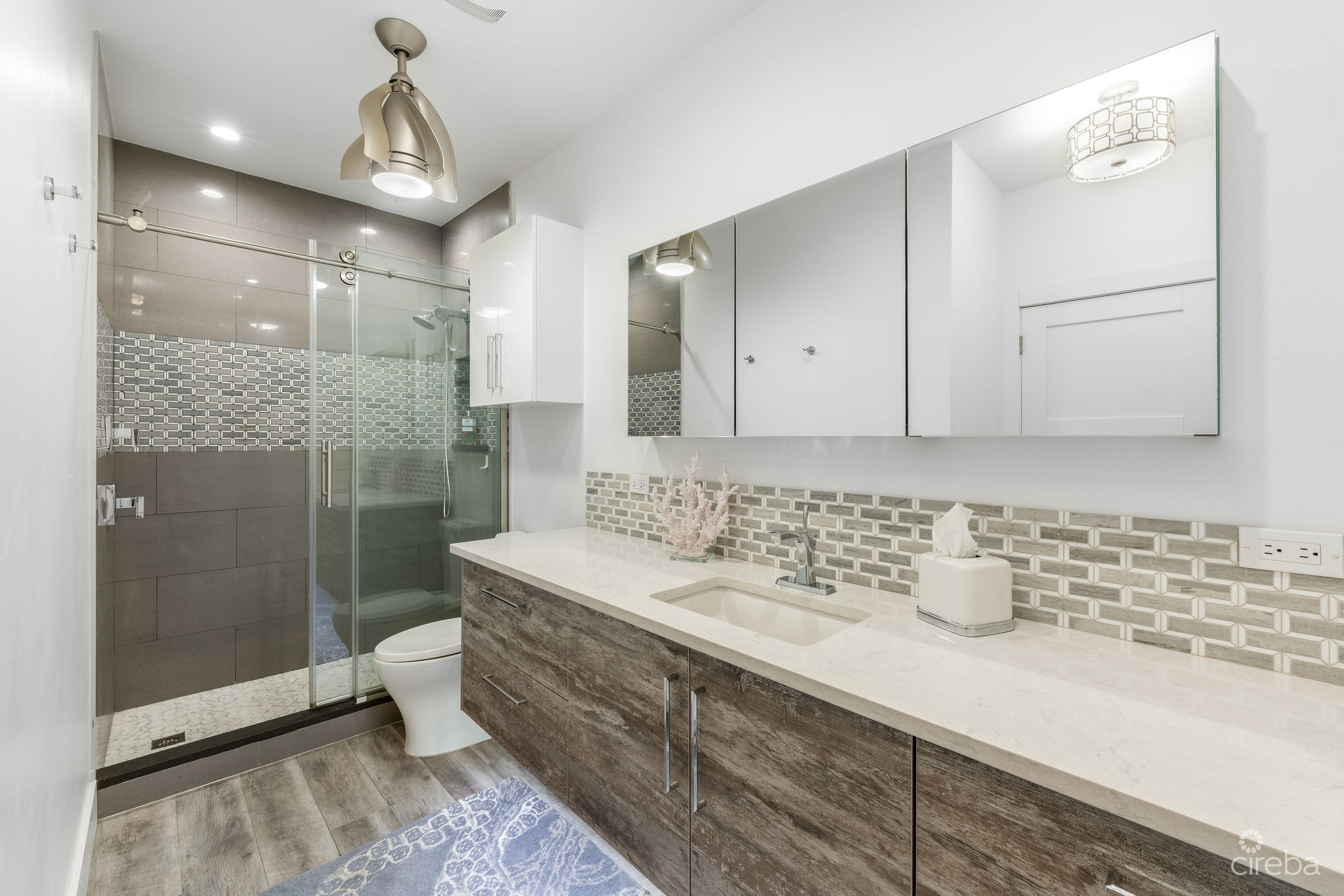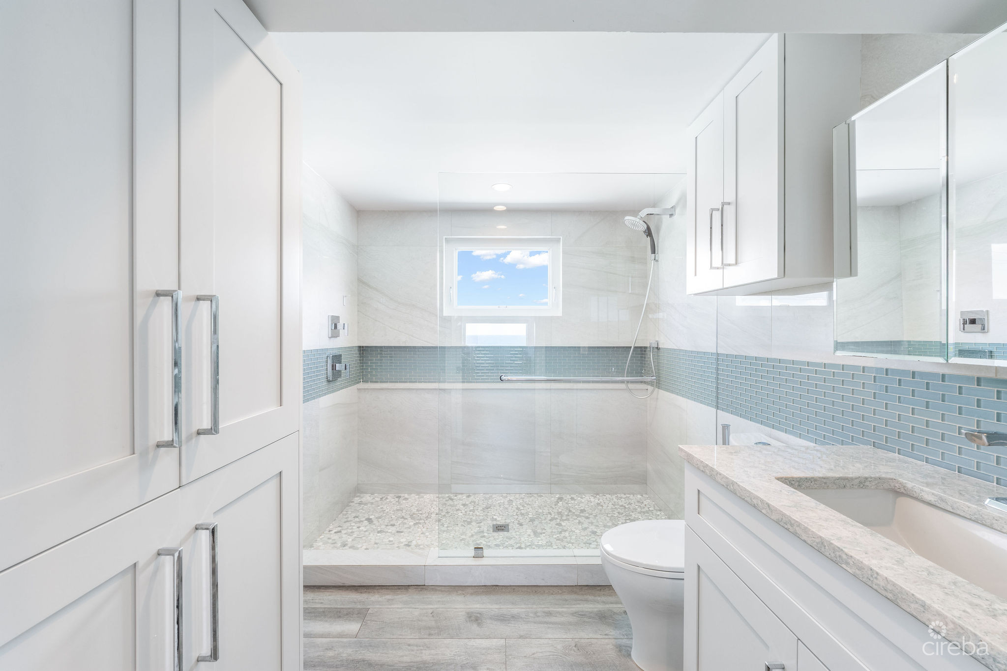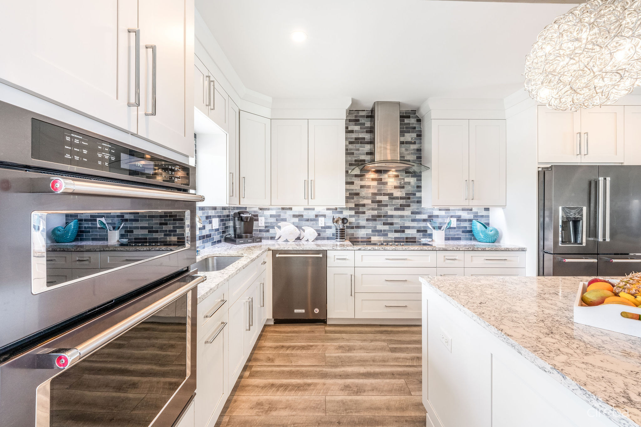 Introducing this meticulously renovated, one-of-a-kind 4 bedroom, 3 bathroom condominium, built as the builder’s personal residence. Located on the shores of Cayman’s iconic Spotts Beach – a sanctuary for resident sea turtles, shady palms, and powdery white sand – this property offers a luxurious coastal living experience like no other. This Penthouse level home boasts sweeping ocean vistas in a captivating palette of blues, greens and aquas, ensuring breathtaking views from virtually every room. From the moment you enter, the panoramic ocean views and expansive white modern cabinetry immediately capture your gaze. Designed with both comfort and functionality in mind, this home features an abundance of smart built-in storage solutions. Custom Murphy Door closet systems maximize space, incorporating built-in shoe storage, laundry hampers, and well organized shelves hidden behind mirrored panels. A true showstopper, the full glass display and LED-lit entertainment bar, paired with two under cabinet beverage centers, elevates the space – perfect for hosting guests or unwinding in style. The spacious kitchen is a chef’s dream, centered around a massive full-slab island that serves both as a stunning focal point and a functional workspace. With a premium appliance package that includes a built-in microwave and wall oven, this kitchen is designed to inspire culinary creativity. Each of the three beautifully appointed bathrooms showcases exceptional craftsmanship, featuring decorator-tiled walk-in showers with barn door glass enclosures, creating a serene spa-like ambiance. The primary bath includes a spacious vanity for everyday essentials, complemented by diffused under cabinet lighting, six foot long mirrored medicine cabinet storage, and an entire wall of custom white-gloss built-in storage cabinets, offering ample, thoughtfully designed space. The generously sized bedrooms are serene retreats, with custom built-ins and a primary suite that captures ocean views, allowing the beauty of the sea to be enjoyed from the comfort of your bed. Another highlight of the condo is the charming ocean-view games room, which doubles as a cozy retreat with a queen-size sleeper sofa to comfortably accommodate additional guests. Step outside onto the large elevated 294 square foot rear open lanai, where you can dine al fresco with a six-seat table, enjoy the tranquil ocean breeze, or unwind in the ample seating areas. Perfect for entertaining, lounging, or relaxing with loved ones, the lanai offers a true extension of your living space. This exceptional condominium perfectly blends modern luxury, functionality, and unparalleled views – all wrapped in a sleek contemporary design. Ideally suited as both a sought-after luxury vacation rental or as a spectacular resident family beach home. Schedule your private showing today! *Strata fees include water and Logic package