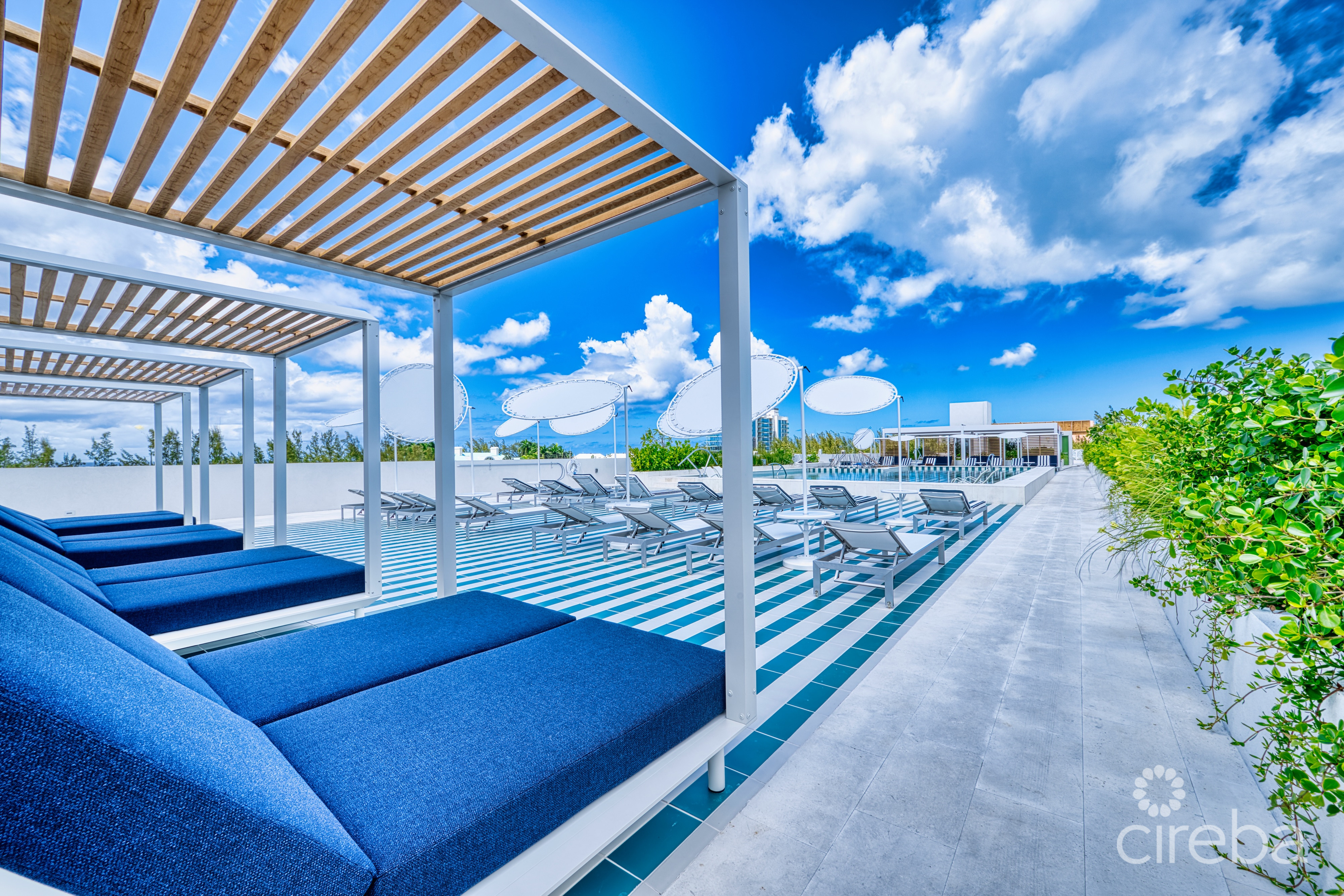 Residents of The Grove Too enjoy an array of exceptional amenities, including a private rooftop terrace with breathtaking views of the Caribbean Sea and North Sound. This elevated sanctuary features a resort-style pool, hot tub, sauna, steam cabins, and a meditation garden with daybeds and hammocks. Social gatherings are effortlessly accommodated with entertainment areas for children, gathering spaces for events, and a full-service rooftop bar offering a limited food menu.