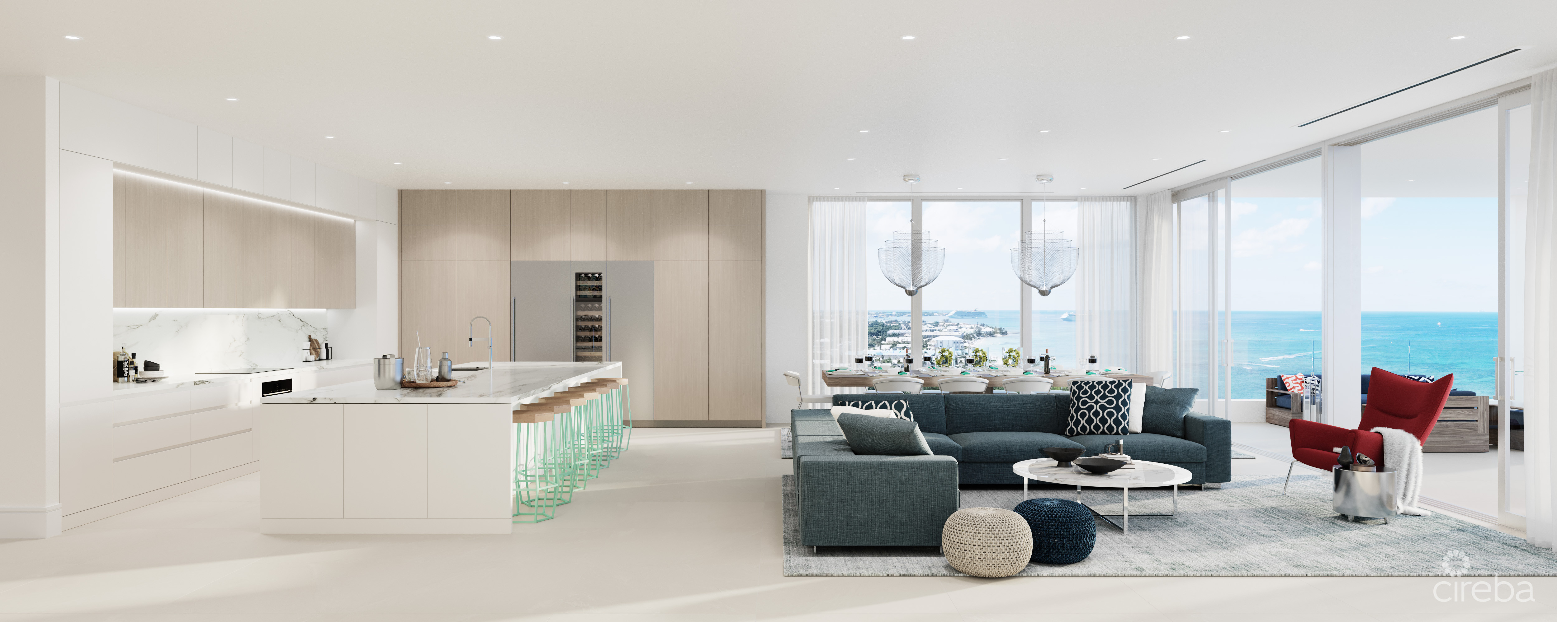 This 4-bedroom, 4.5 bathroom residence blends inspired architecture and contemporary interior design with magnificent views of Seven Mile Beach. This exclusive residence in the North Building maximizes light and views with 10-foot floor to ceiling windows and sliding glass doors. The perfectly composed interiors balance form and function, providing thoughtful and beautifully crafted spaces with subtle detailing throughout.