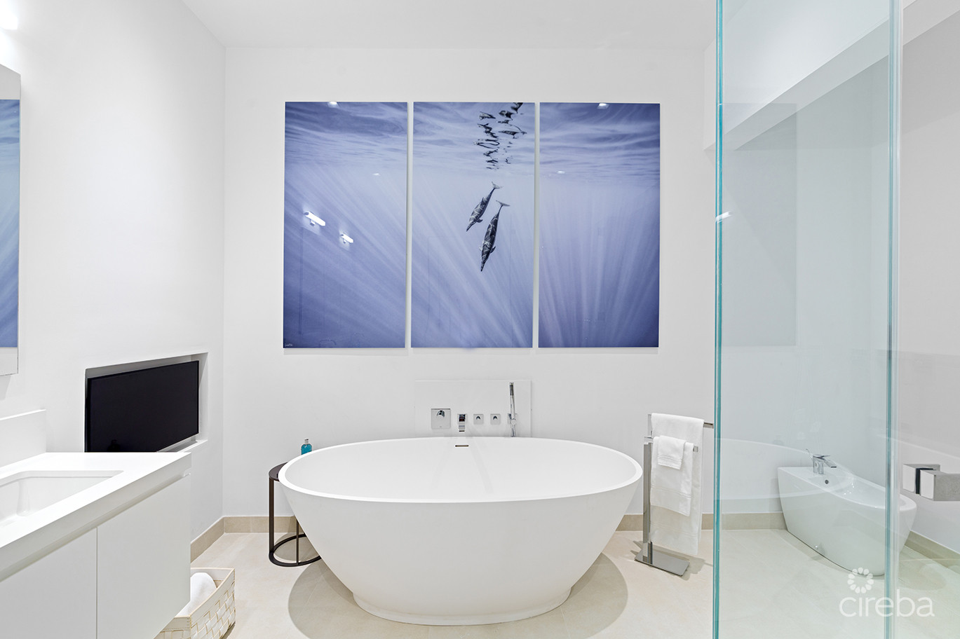 Floor-to-ceiling windows frame sweeping, unobstructed views of the Caribbean Sea, with an oceanfront master suite offering some of the most stunning vistas in the entire complex. Elevator access provides effortless transitions between your private oasis and the powder white sand beach, infinity pool, and other exceptional amenities.