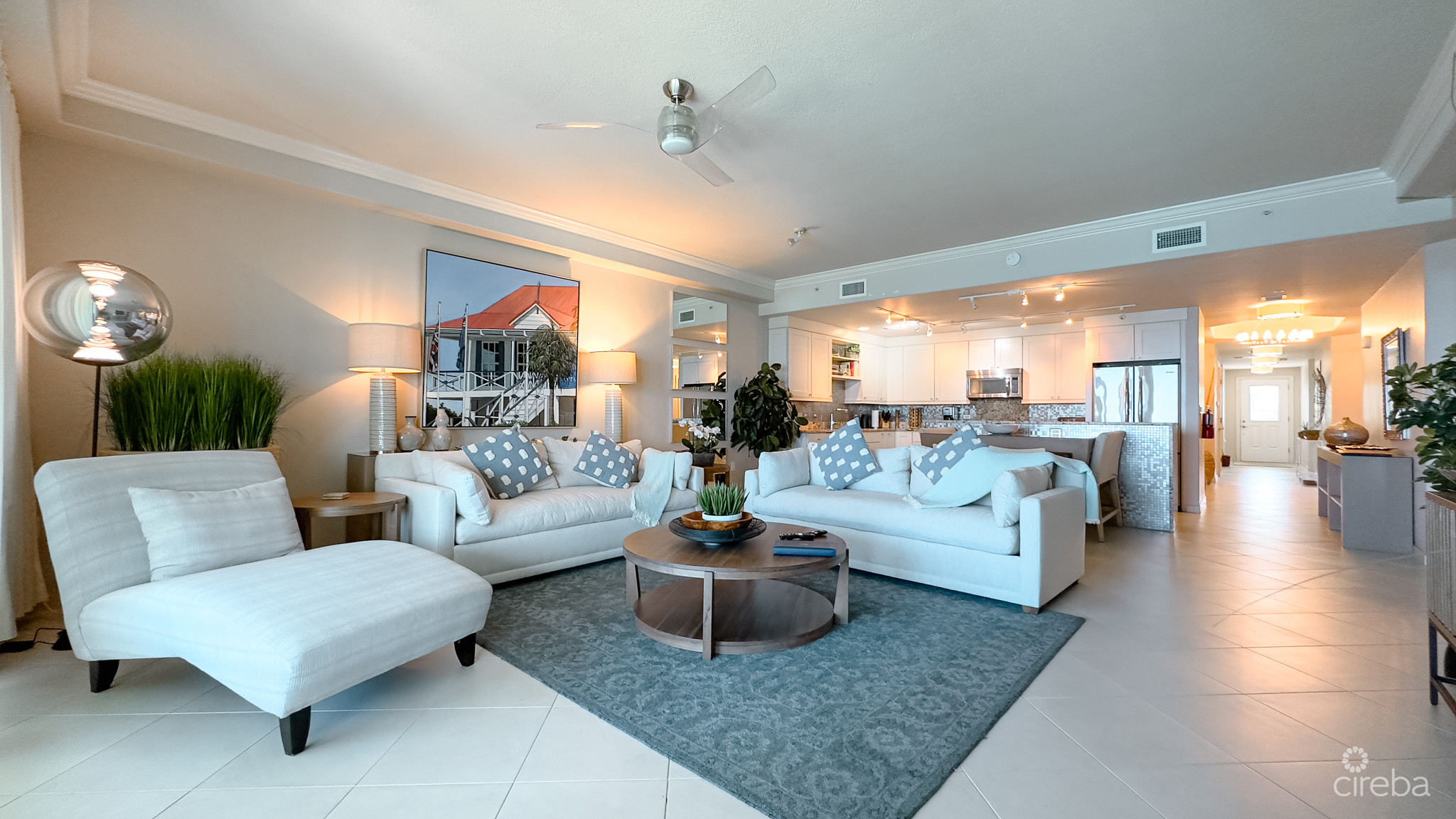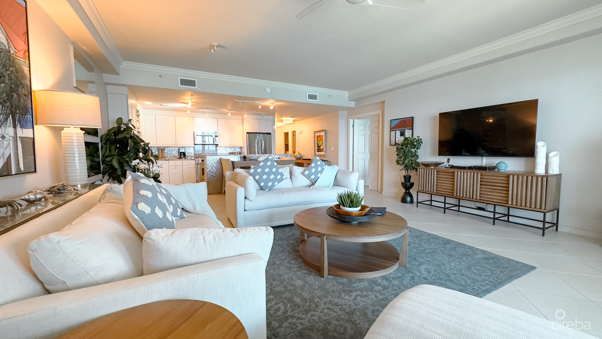 Your private terrace becomes an everyday retreat, offering front-row views of Seven Mile Beach’s shimmering shoreline. From sunrise reflections to deep sunset colours, this third-floor vantage point captures the full spectrum of oceanfront living. The terrace easily accommodates outdoor dining, lounging, and quiet moments where the sound of the sea sets the pace of your day.