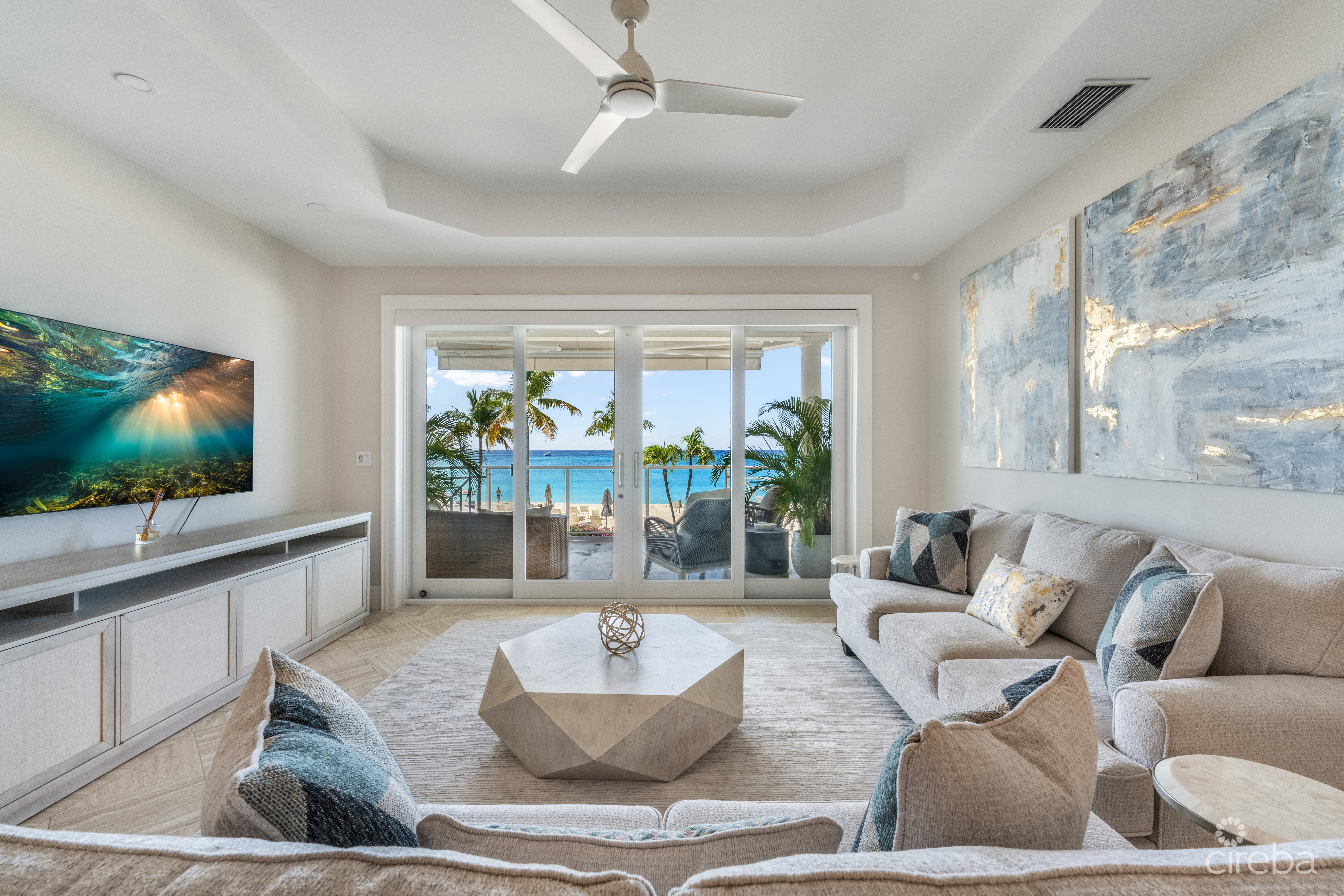 Villa 20 is a second floor unit with 3 bedroom plus den/media room and 3 ensuite bathrooms. The villa has 2120 sq ft with a large beachfront terrace.